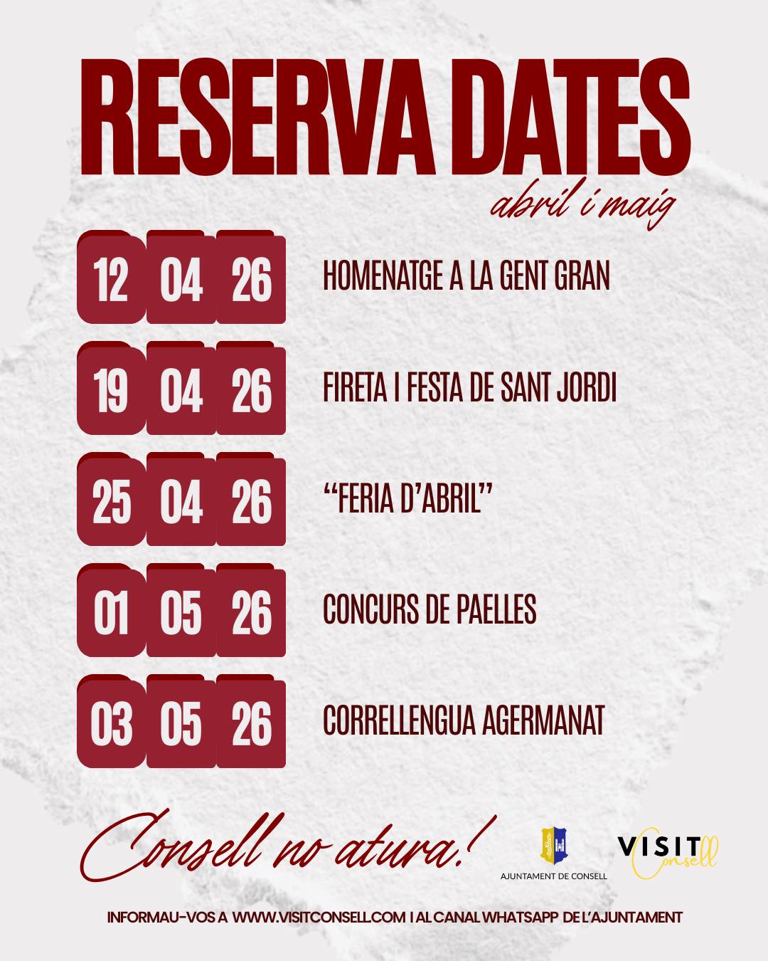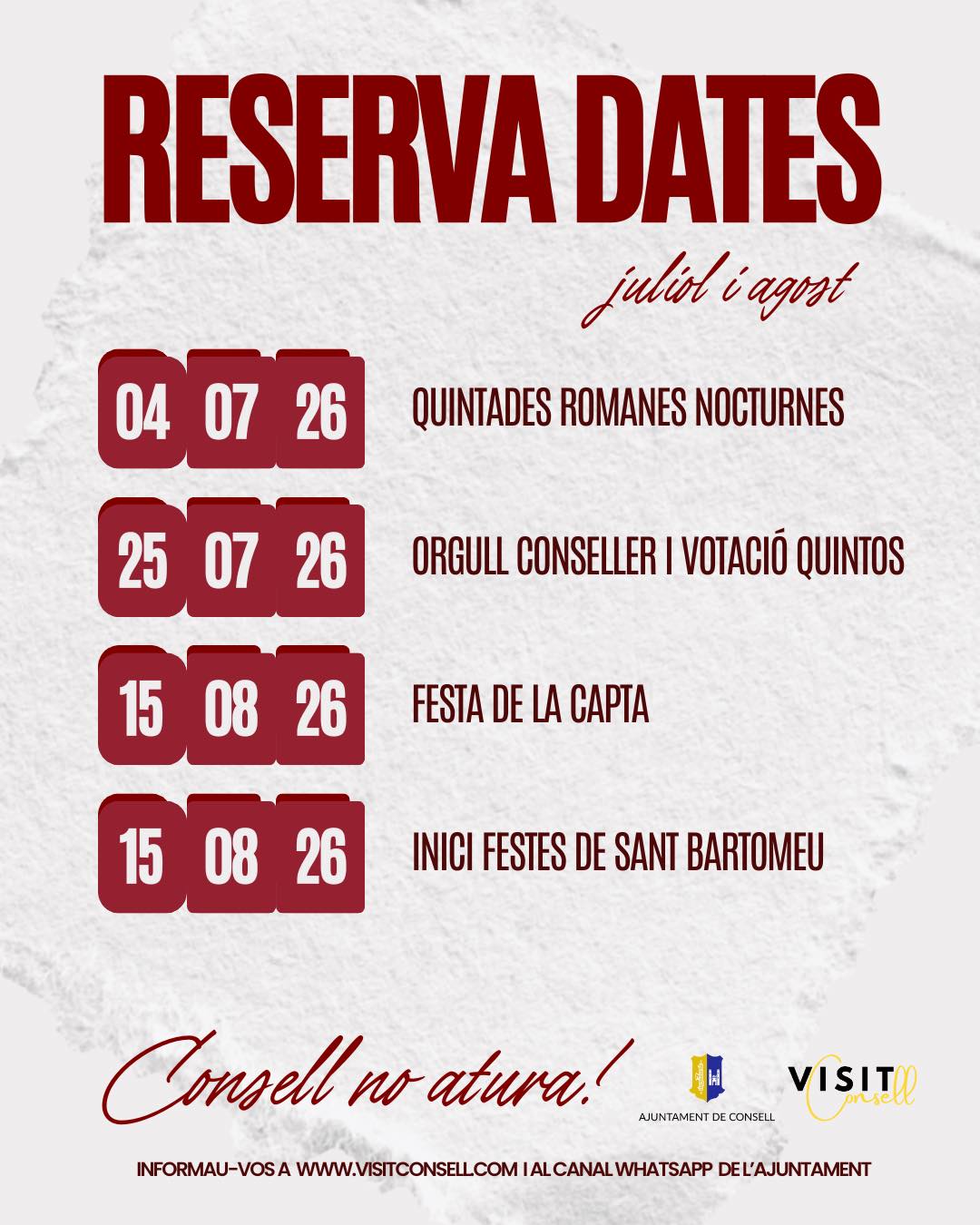 Informau-vos a www.visitconsell.com i al canal de WhatsApp de l’Ajuntament.