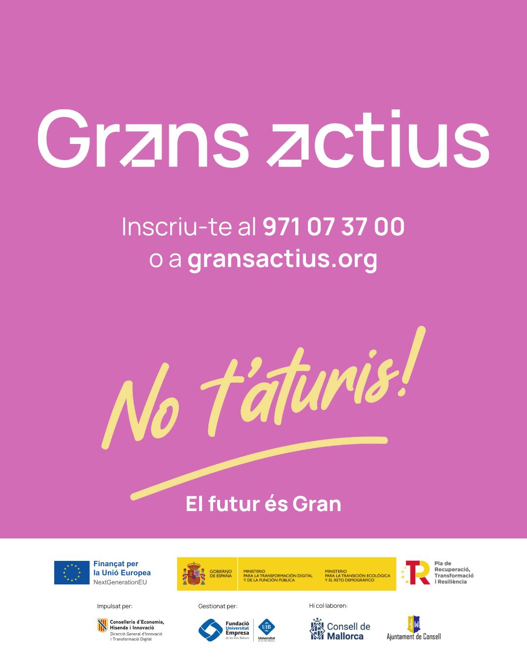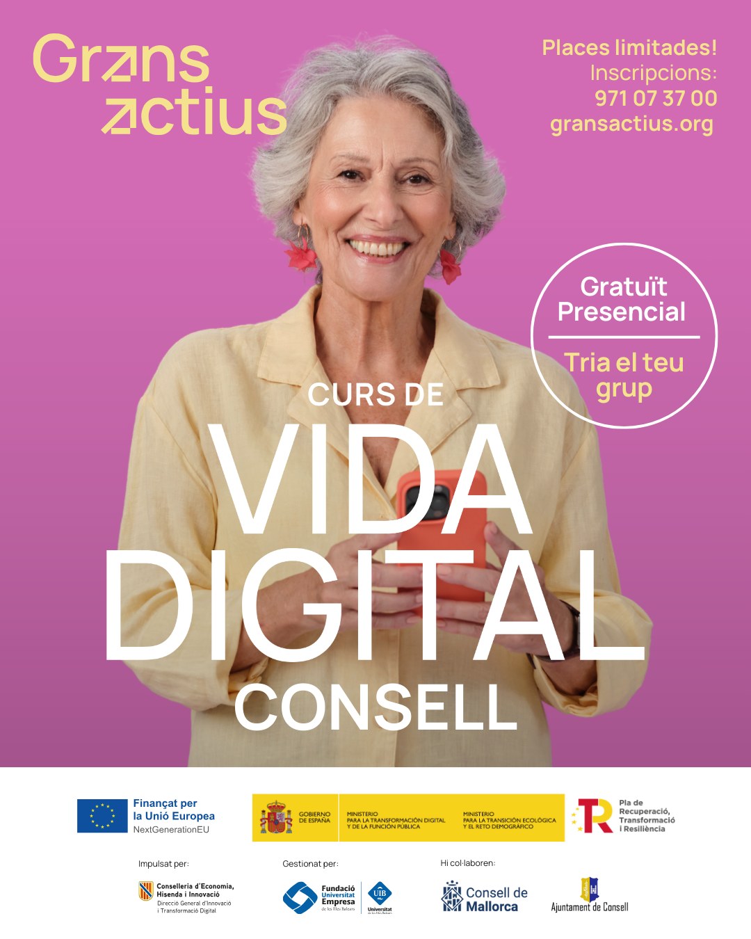 A partir del 22 de setembre, Consell serà un dels municipis que acollirà el programa Grans Actius amb el Curs de Vida Digital, una formació totalment gratuïta adreçada a persones majors de 55 anys per a reduir la bretxa digital i fomentar la seva participació en el món digital.