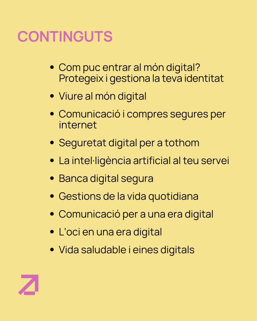A través d'aquesta formació, els assistents podran aprendre des de conceptes essencials del món digital fins a ciberseguretat i intel·ligència artificial, adquirint eines pràctiques per a moure's amb confiança en l'entorn digital.